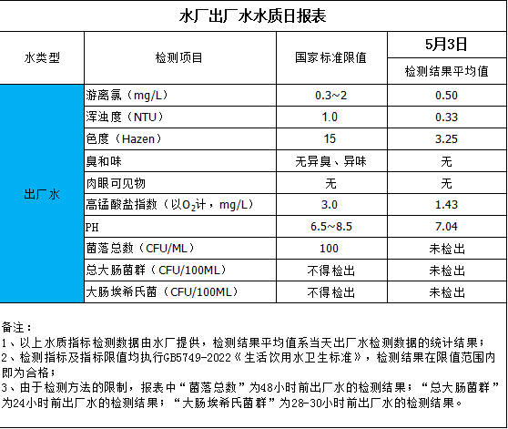 水廠出廠水水質(zhì)日報表(2025-5-3)