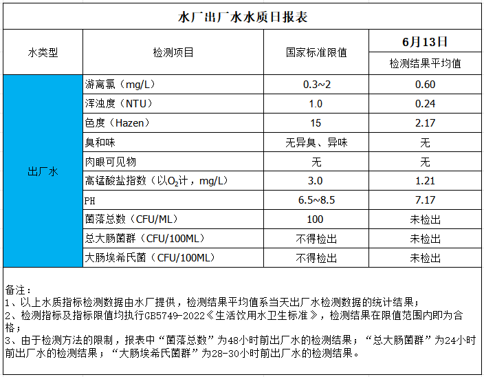 水廠出廠水水質(zhì)日報表(2025-6-13)