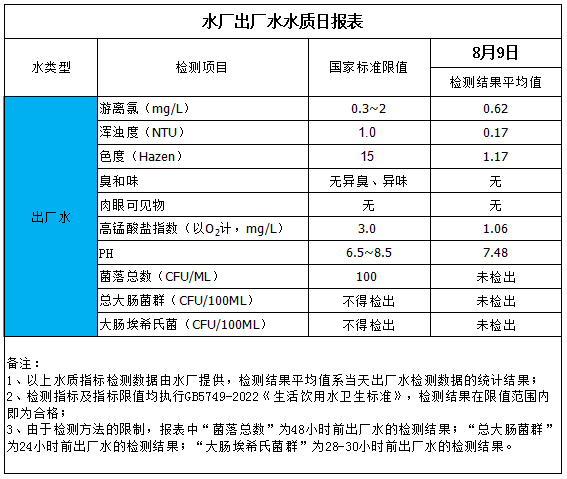 水廠出廠水水質(zhì)日?qǐng)?bào)表(2025-8-9)