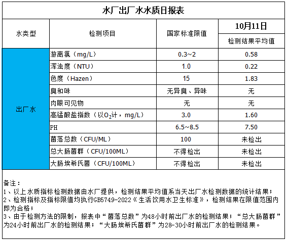 水廠出廠水水質(zhì)日報(bào)表(2025-10-11)