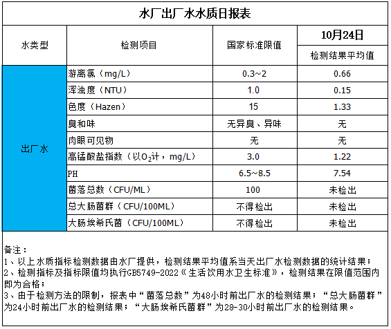水廠出廠水水質(zhì)日報表(2025-10-24)