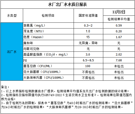 水廠出廠水水質(zhì)日報(bào)表(2025-11-2)