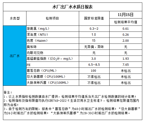 水廠出廠水水質(zhì)日報表(2025-11-15)