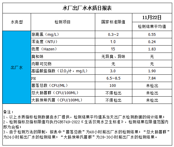 水廠出廠水水質日報表(2025-11-22)