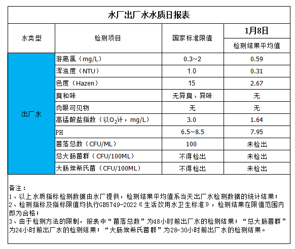 出廠水水質(zhì)日?qǐng)?bào)表(2026-1-8)