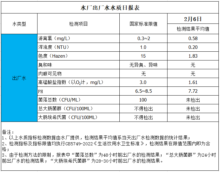 出廠水水質(zhì)日?qǐng)?bào)表(2026-2-6)