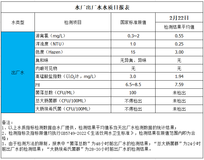 出廠水水質(zhì)日報(bào)表(2026-2-22)