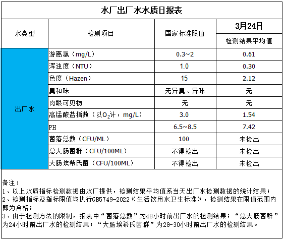 出廠水水質(zhì)日?qǐng)?bào)表(2026-3-24)