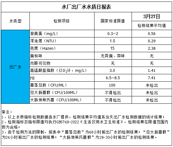出廠水水質(zhì)日?qǐng)?bào)表(2026-3-27)