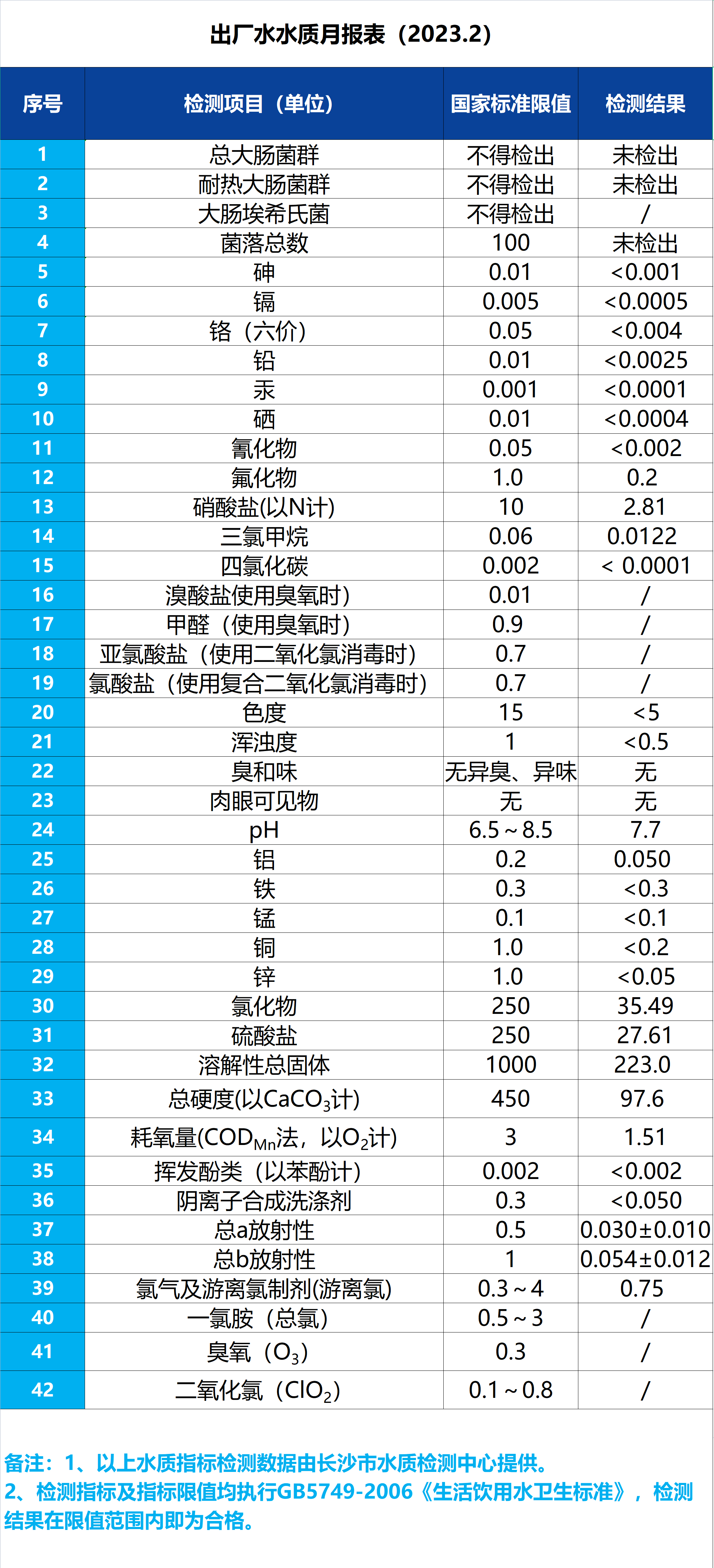 出廠水水質(zhì)月報(bào)表(2023.2)