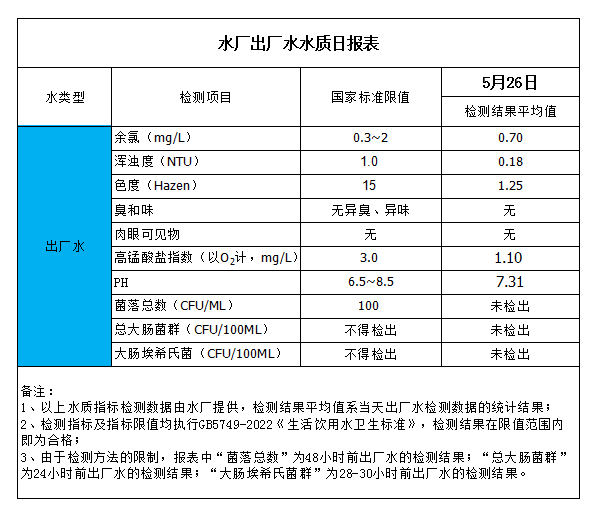 水廠出廠水水質(zhì)日報表(2023-5-26)