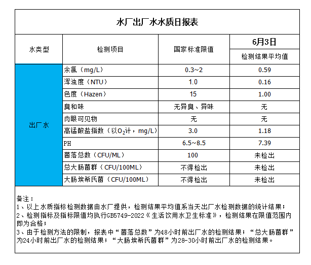 水廠出廠水水質(zhì)日?qǐng)?bào)表(2023-6-3)