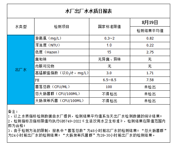 水廠出廠水水質(zhì)日報表(2023-8-19)