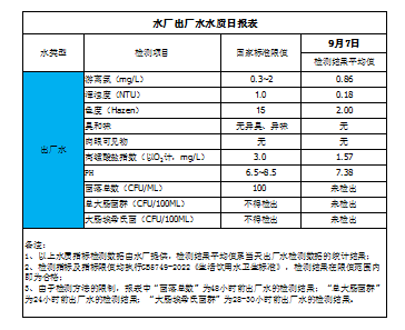 水廠出廠水水質(zhì)日報(bào)表(2023-9-7)