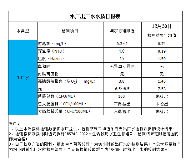 水廠出廠水水質(zhì)日報表(2023-12-30)