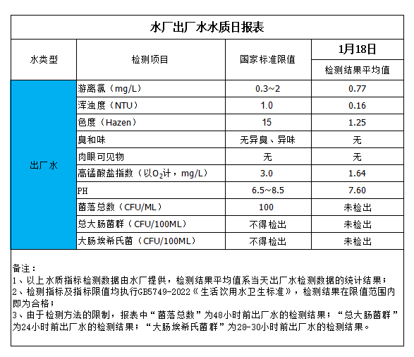 水廠出廠水水質(zhì)日?qǐng)?bào)表(2024-1-18)