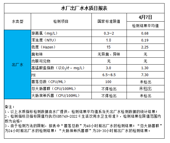 水廠出廠水水質日報表(2024-4-7)