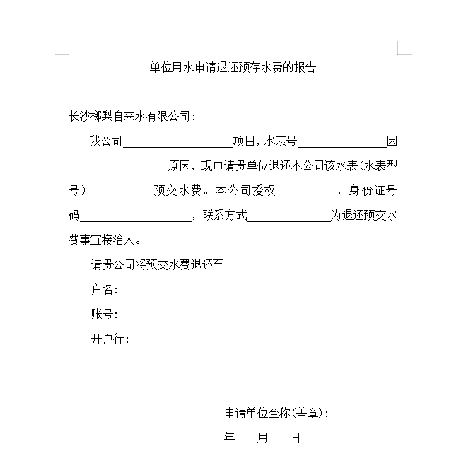 點(diǎn)擊下載單位用水申請(qǐng)退還預(yù)存水費(fèi)的報(bào)告